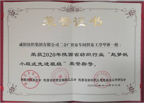 本次會(huì)議上,集團(tuán)公司共有五個(gè)先進(jìn)班組和兩個(gè)先進(jìn)個(gè)人榮獲殊榮,分別是:一分廠織部車間質(zhì)量組、二分廠紡部車間細(xì)紗工序乙班三組、子公司秦越紡織織部車間織布工序丙班榮獲“全國(guó)紡織行業(yè)創(chuàng)新型班組”榮譽(yù)稱號(hào);一分廠織部車間質(zhì)量組、二分廠織部車間織布工序甲班一組、子公司秦越紡織織部車間織布工序甲班榮獲“2020年陜西省紡織行業(yè)‘趙夢(mèng)桃小組式先進(jìn)班組’”榮譽(yù)稱號(hào);二分廠織部車間指導(dǎo)工趙莉絨(女)、子公司秦越紡織紡部車間梳棉保全工嚴(yán)鴿榮獲“2020年陜西省紡織行業(yè)‘夢(mèng)桃式最美奮斗者’”榮譽(yù)稱號(hào)。集團(tuán)公司向獲得表彰的先進(jìn)班組和個(gè)人表示熱烈的祝賀!