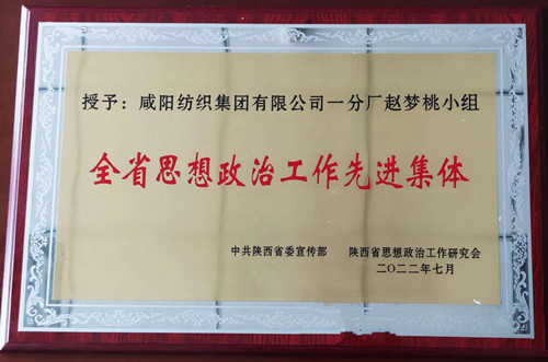 近日,中共陜西省委宣傳部、陜西省思想政治研究會印發(fā)《關(guān)于對全省思想政治工作先進(jìn)單位(集體)和先進(jìn)個(gè)人予以表揚(yáng)的通報(bào)》(陜宣字﹝2022﹞122號),授予35個(gè)單位“全省思想政治工作先進(jìn)集體”榮譽(yù)稱號,咸陽紡織集團(tuán)有限公司一分廠趙夢桃小組榮獲“全省思想政治工作先進(jìn)集體”。