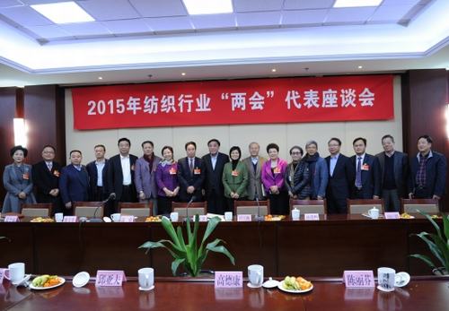 中紡聯(lián)負(fù)責(zé)人與部分紡織業(yè)的全國(guó)人大代表和政協(xié)委員合影留念。
